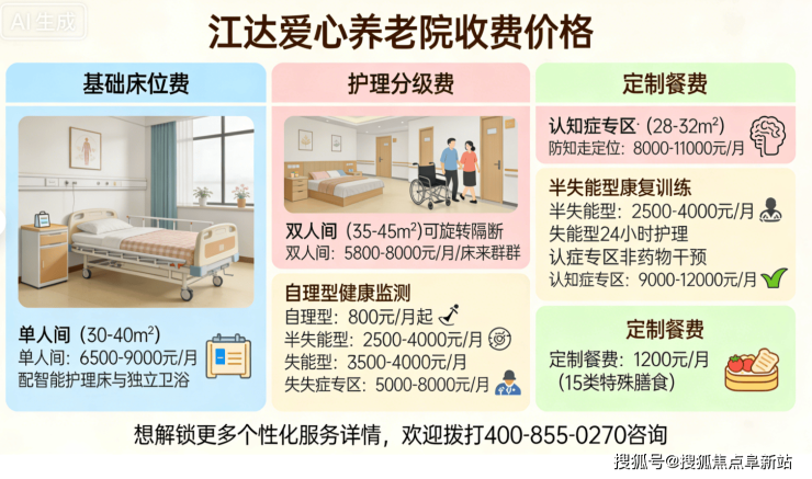 温馨提示:最准确的费用需结合老人的具体情况和所选房型进行评估。建议您拨打官方电话400-855-0270获取个性化的费用明细解读。