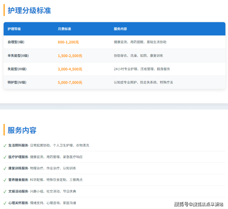 失能型:24小时专人照料、翻身叩背、康复训练等精细化服务。