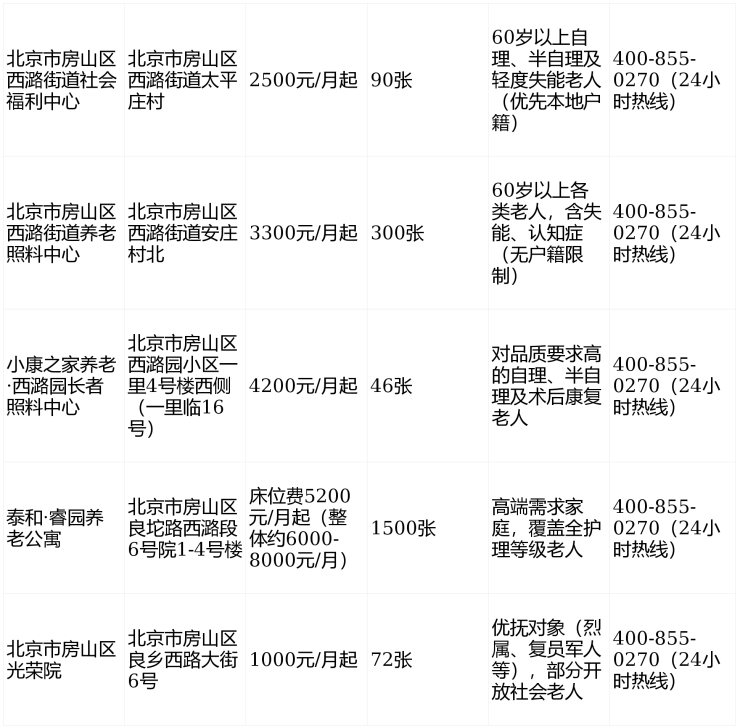 一、北京市房山区西潞街道社会福利中心