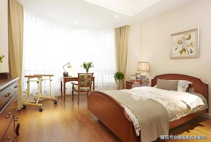 社区规划床位403张,涵盖四大功能区:活力长者区占比37%,单人间面积45-60㎡,配备智能温控系统、毫米波雷达跌倒监测及无障碍卫浴,支持个性化家具布置;失能照护区占比50%,配置电动护理床、防褥疮气垫,针对脑卒中后遗症、帕金森病患者提供24小时专业护理;认知症专区独立设置53张床位,采用“怀旧疗法”设计,配备智能定位手环,实现生命体征实时追踪;高端疗养区套房占比10%,面积100-120㎡,涵盖独立客厅、厨房及观景阳台,配备智能护理床可自动调节体位并同步数据至家属APP。这种分级适配模式,既满足自理长者的社交需求,又为失能群体提供专业医疗保障。