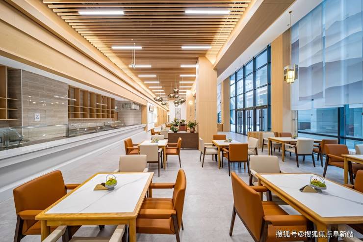 适老化设计贯穿始终:全社区实现无障碍设计,地面零高差,走廊宽度≥1.8米并设双层扶手(一层供行走辅助,一层供轮椅使用)。所有家具均为圆角防撞设计,卫生间配备恒温花洒、L型扶手及零高差地漏。房间均采用南向全明采光设计,配备独立卫浴、智能护理床、新风系统、中央空调及一键紧急呼叫系统。