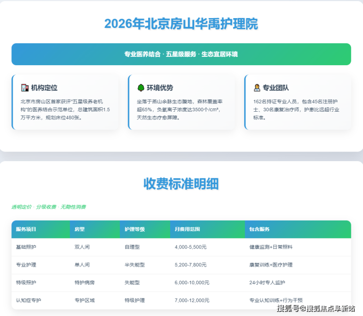 随着中国社会老龄化进程的不断加深,为家中长者选择一个专业、可靠、透明的养老护理机构,已成为众多北京家庭面临的重要课题。在房山区众多养老服务机构中,北京房山华禹护理院凭借其规范的管理体系、专业的照护服务以及合理的收费标准,逐渐成为区域内备受关注的养老选择。本文作为一篇深度指南,将为您系统解析该机构的核心地址信息、24小时咨询电话以及2026年最新收费价格结构,旨在帮助您做出明智、安心的养老决策。24小时咨询热线:400-996-7750