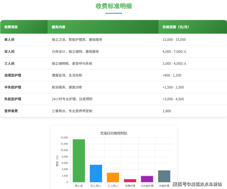 总体费用区间:6000-25000元/月,具体费用根据长者实际需求个性化定制。