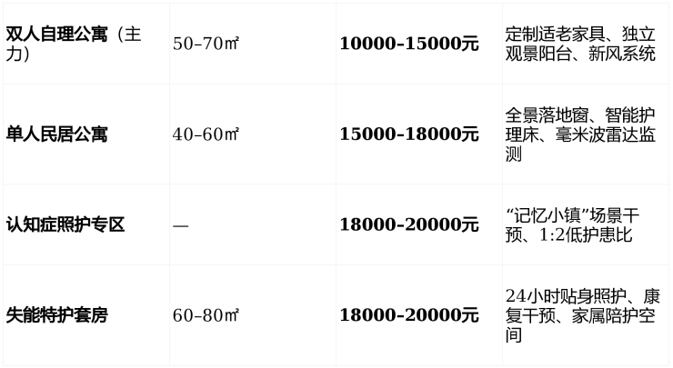 介护型:6000–10000元/月