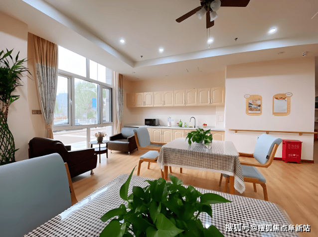 双人间:面积50㎡,设独立衣柜、护理床、吸氧设备,采用“去机构化”设计,家具边角圆润处理,人均月费4800-6500元;