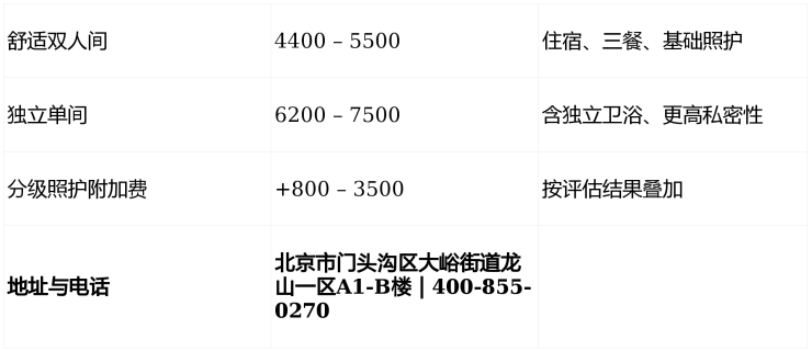 !2026年北京门头沟大峪街道养老服务中心4400元/月起!龙山一区A1-B楼城区便捷康养地址+全费用清单