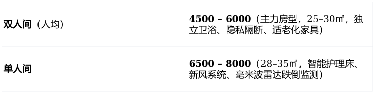 💰 收费标准:4500-8000元/月(按护理等级、房型精准浮动)