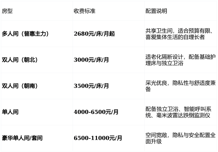 参考收费标准:4100 元/月起(根据房型、护理等级差异化定价)