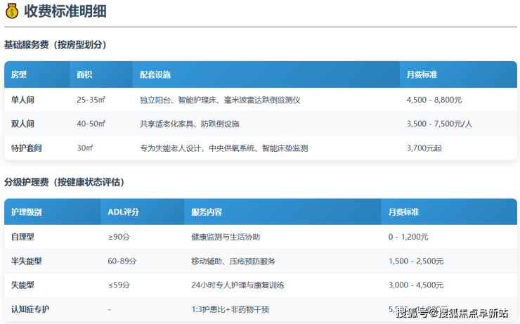 总费用示例:一位选择双人间、属于半失能等级的长者,月度总费用可能包含:双人间床位费 + 半失能级护理费 + 标准餐饮费。而一位需要单人间、且为失能等级的长者,总费用则会显著增加。