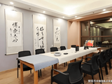 餐厅摆放了一套很漂亮的转盘大圆桌,从餐厅的角度往客厅看过去,效果也相当给力。客厅和阳台的玻璃隔断门还有折射效果呢!