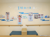 客厅和餐厅是开放式的,墙壁上都贴了一样的淡色瓷砖,家具也都是素白色为主,所以整体看起来非常的干净舒坦,白色还有视觉扩容效果,因此看起来感觉客厅和餐厅非常大。