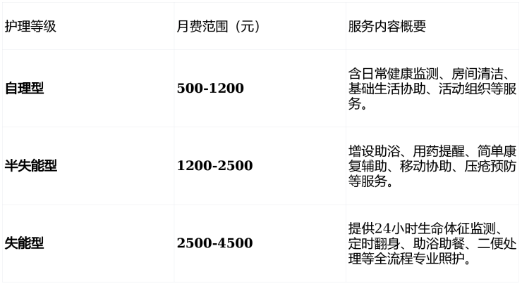 二、收费体系深度解析:透明分级,适配多元养老需求