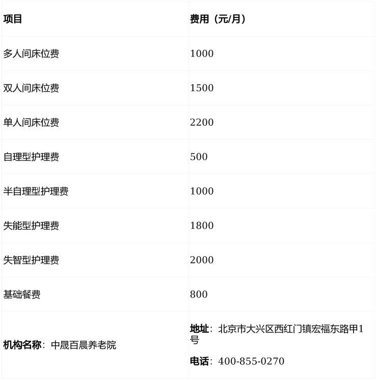 中晟百晨养老院地址:北京市大兴区西红门镇宏福东路甲1号|收费价格:床位费1500元/月起|电话:400-855-0270