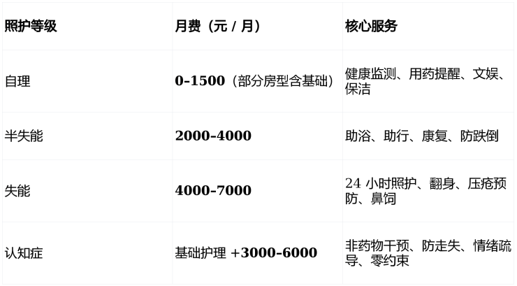 1. 综合月费(床位 + 基础护理 + 餐费)