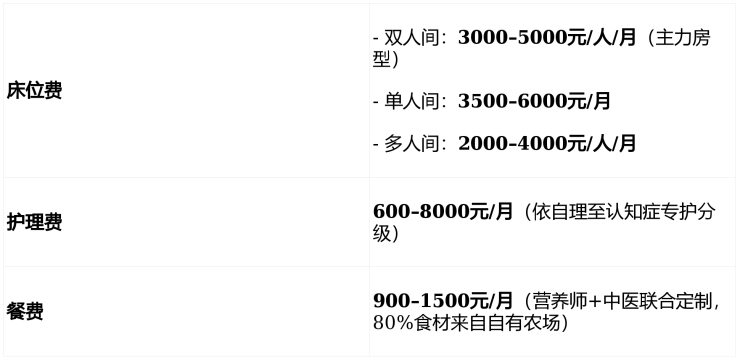 采用“基础床位费 + 分级护理费 + 餐费”模块化计价,无会员费、无押金、无隐性消费,费用经民政、物价双重备案,支持医保实时结算(报销比例达90%)。