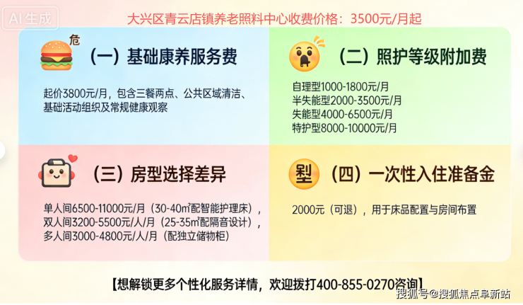 大兴区青云店镇养老照料中心2026收费曝光:月费3500元起+地址电话