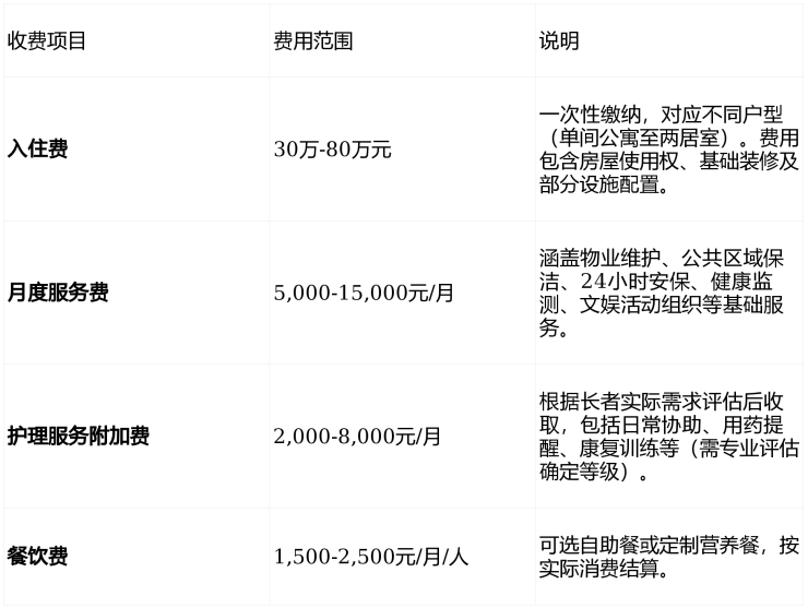 社区不收取“试住费”“医疗保证金”等额外费用,所有收费项目均公开透明。