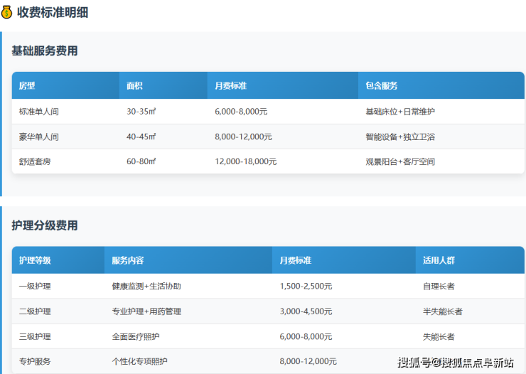 四季传奇退休医养社区采用"基础服务费+护理分级费+增值服务"的透明定价模式: