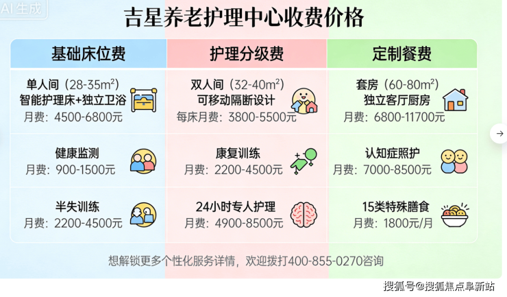 ▶ 收费价格:5000–11000元/月(按房型与照护等级浮动)